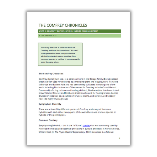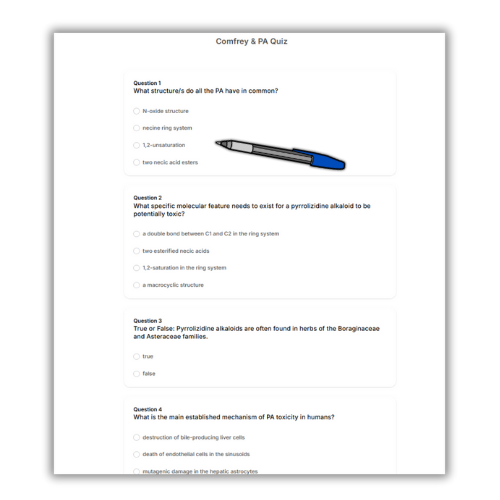 This short course on pyrrolizidine alkaloids (PA) and Comfrey (Symphytum spp.) is designed to provide experienced herbalists, healthcare professionals, pharmacists, and the phytochemically curious with a comprehensive understanding of PA in Western herbs.